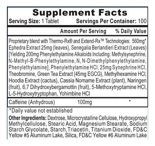 - Contiene 25 mg de extracto de efedra de la marca Thermo-Z™: ¡legal en los 50 estados!